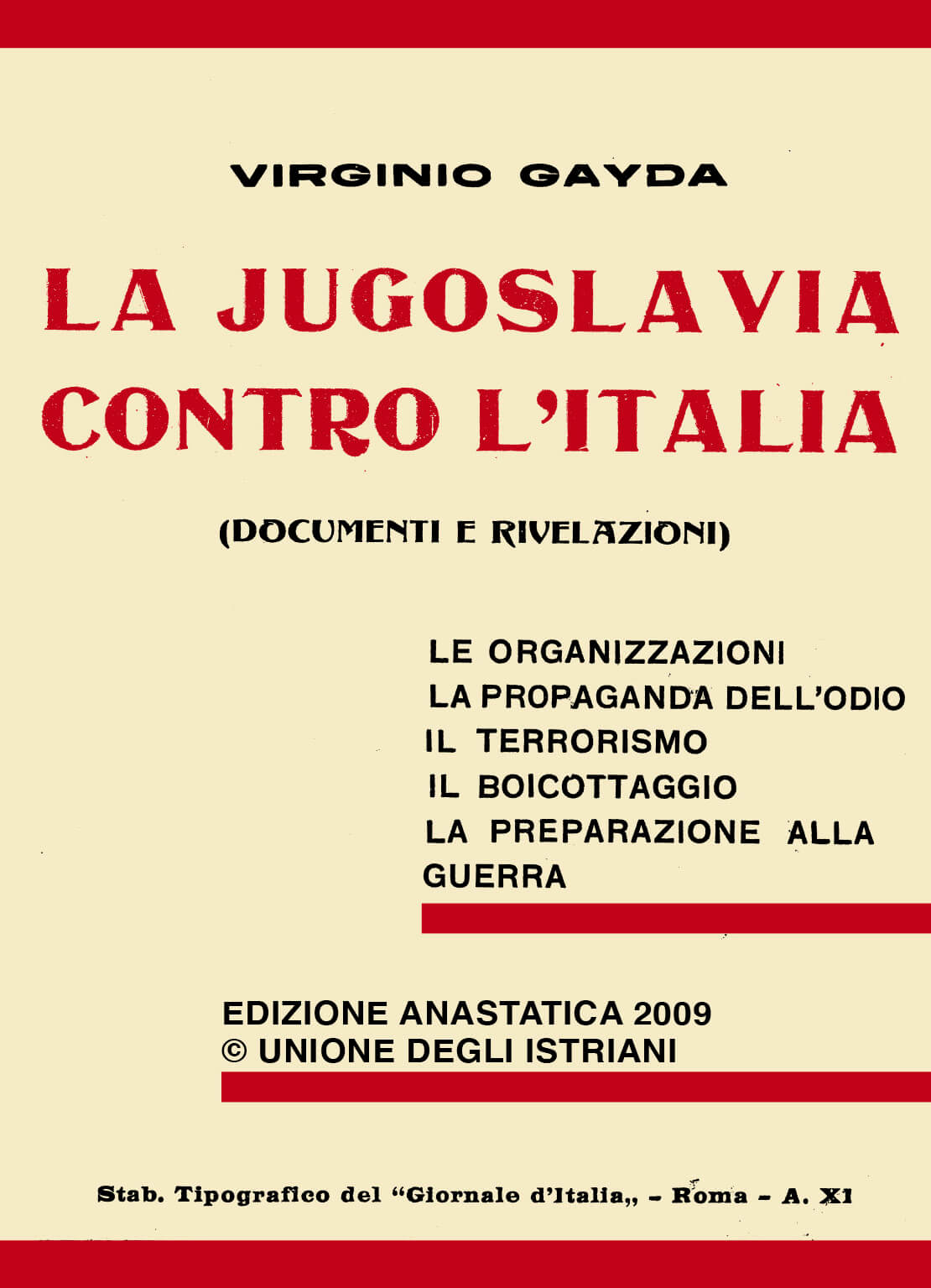 Virginio Gayda, La Yugoslavia contro l’Italia, Unione degli Istriani 2009, pp. 138, brossura.