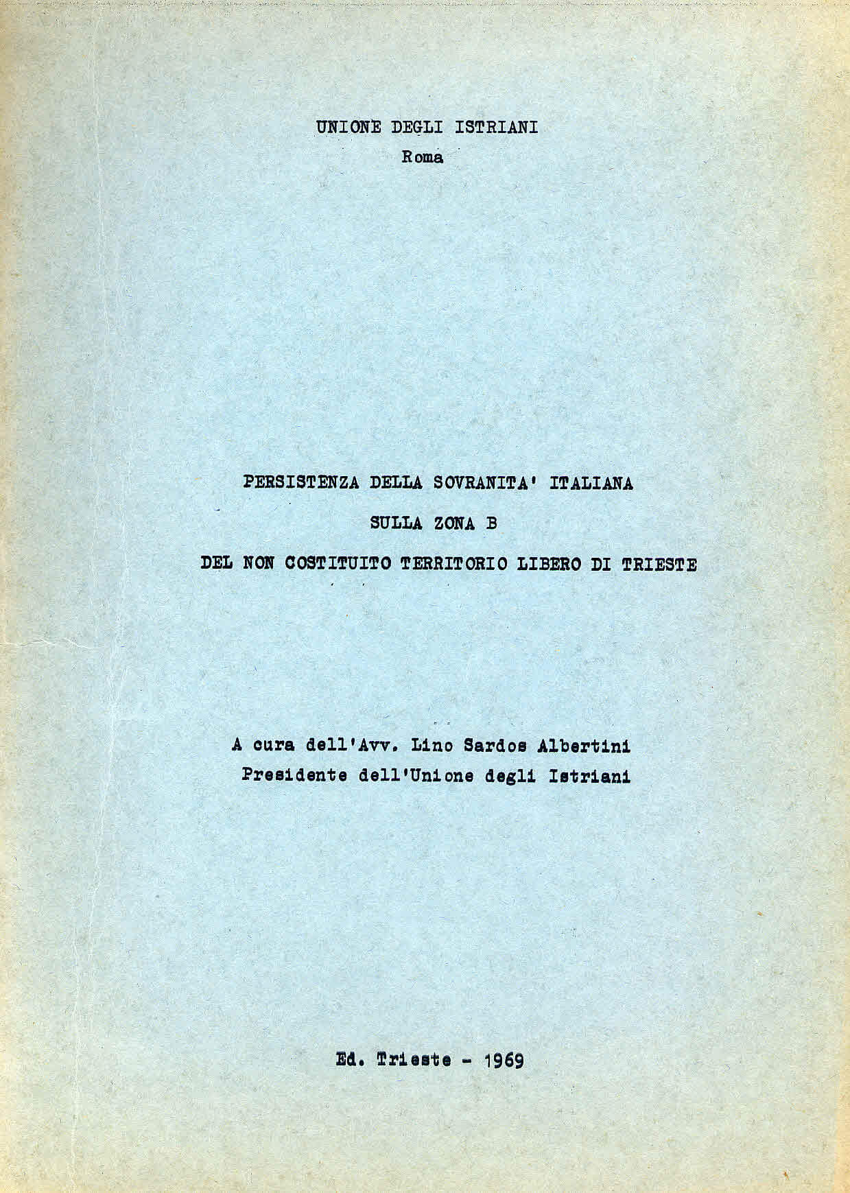 Lino Sardos Albertini, Persistenza della sovranità italiana sulla zona B del non costituito Territorio Libero di Trieste, Unione degli Istriani 1969, pp. 74, brossura.