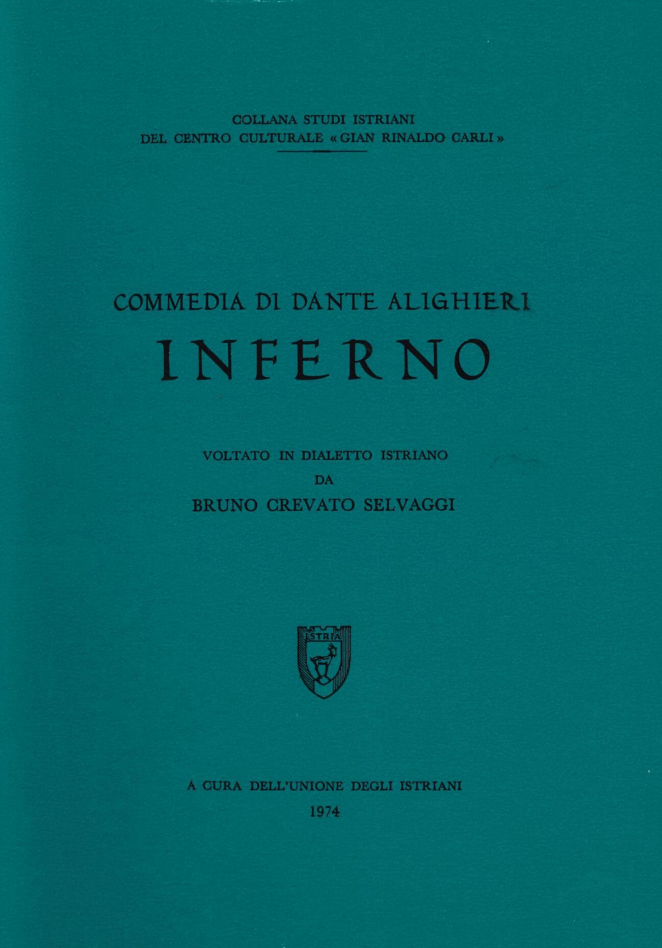 Bruno Crevato Selvaggi (a cura di), Commedia di Dante Alighieri – Inferno voltato in dialetto istriano, Centro Culturale “Gian Rinaldo Carli” e Unione degli Istriani 1974, pp. 231, brossura con sovraccoperta.