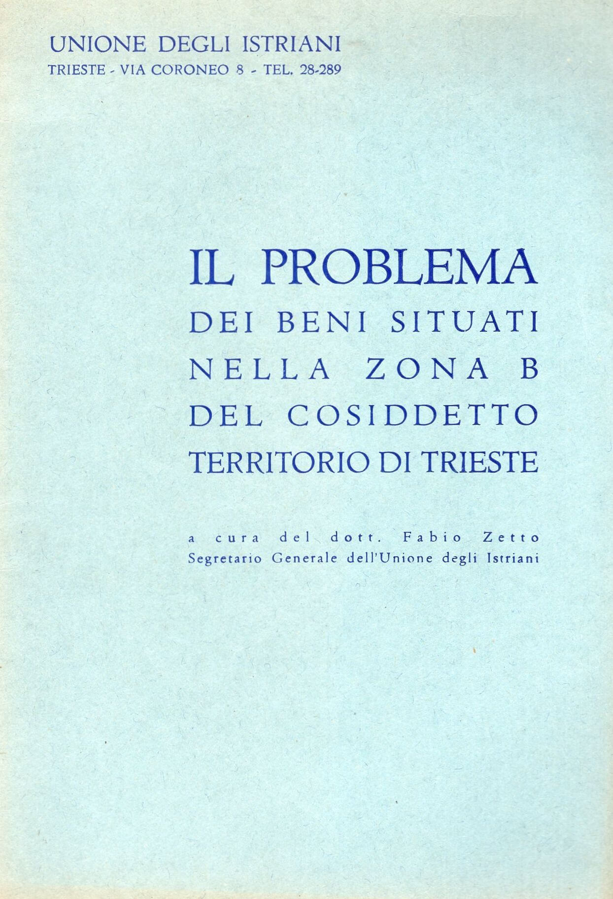Fabio Zetto, Il problema dei beni situati nella Zona B del cosiddetto Territorio di Trieste, Unione degli Istriani 1956, brossura.
