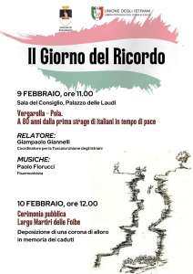 Nella mattinata di lunedì 10 febbraio, a Sondrio, presso il Parco della Rimembranza, si è svolta la cerimonia per il Giorno del Ricordo, in memoria delle vittime delle foibe e dell’esodo degli istriani, fiumani e dalmati. L’iniziativa, promossa dal Comune di Sondrio in collaborazione con l’Unione degli Istriani, ha visto la partecipazione delle autorità civili, militari e religiose, riunite per…