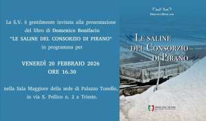 Si intitola “Le saline del Consorzio di Pirano” il nuovo volume a cura dell’attivissimo Socio Domenico (Dino) Bonifacio, edito dall’Unione degli Istriani, la cui presentazione avrà luogo venerdì 20 febbraio, alle ore 16.30, nella Sala Maggiore della sede di Palazzo Tonello a Trieste. Di seguito vi proponiamo la prefazione al volume del nostro Presidente Massimiliano Lacota. *** Questo libro di…
