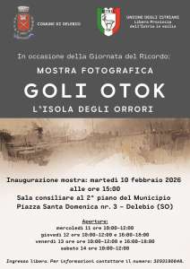 Una bella iniziativa quella che avrà luogo nel pomeriggio del 10 febbraio prossimo nell’aula consiliare del Municipio di Delebio (Sondrio), Comune partner dell’Unione degli Istriani. “Goli Otok, l’Isola degli orrori” il titolo della mostra realizzata che viene inaugurata in occasione del Giorno del Ricordo per far conoscere una delle mostruosità del regime comunista di Tito, ovvero quello dei lager jugoslavi.…