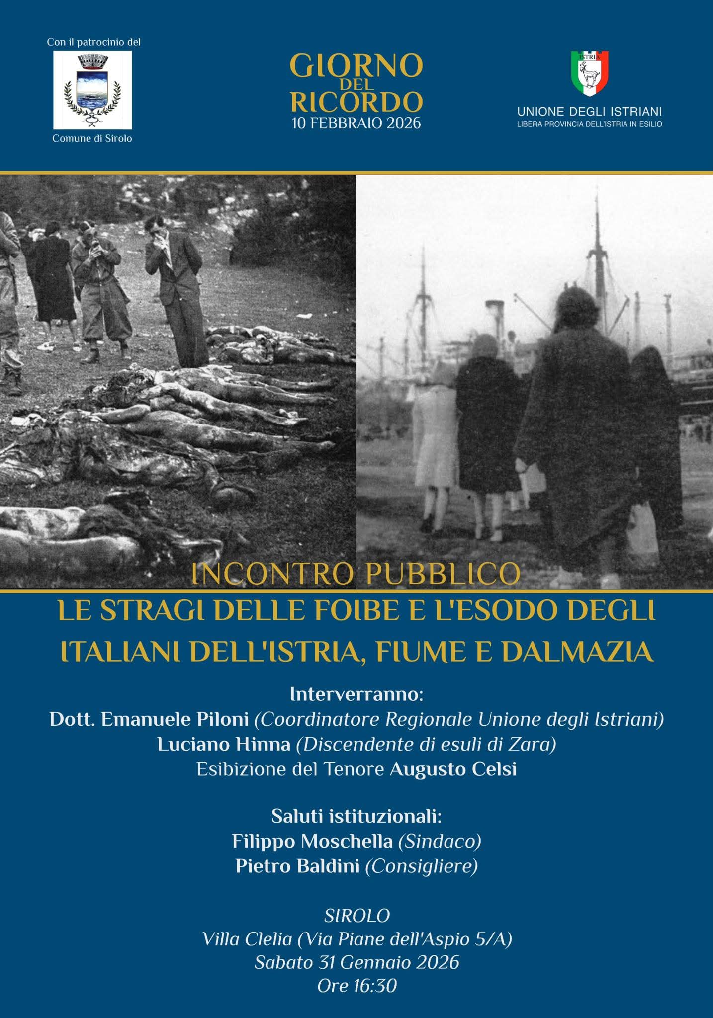 GIORNO DEL RICORDO, INCONTRO PUBBLICO A SIROLO SU FOIBE ED ESODO