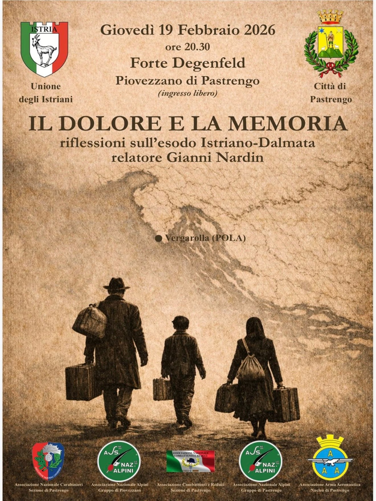 Grazie all’amministrazione comunale di Pastrengo con la quale nel corso del mese di marzo verrà formalizzato il Protocollo di Intesa nell’ambito di una visita a Trieste della Giunta, alle associazioni d’arma e soprattutto al Gruppo Alpini per l’organizzazione della serata.