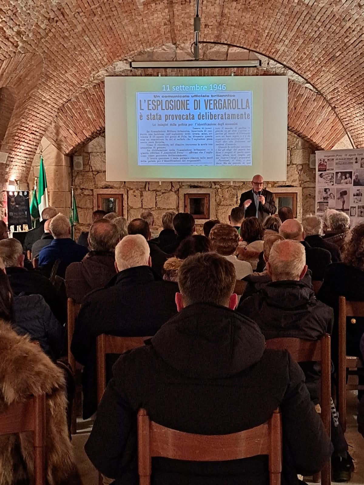 Presenti le Associazioni d’arma (sempre emozionante l’esposizione dei labari durante l’esecuzione dell’inno italiano) e due esuli di prima generazione che al termine della conferenza hanno voluto ringraziare l’Unione degli Istriani e i suoi relatori per la precisione e la chiarezza dei contenuti. In particolare, il nostro abbraccio a Elio Marangoni che proprio il 20 febbraio ha compiuto gli anni ed è stato testimone diretto dell’esplosione di Vergarolla trovandosi dalla parte opposta della baia al momento della deflagrazione delle mine.