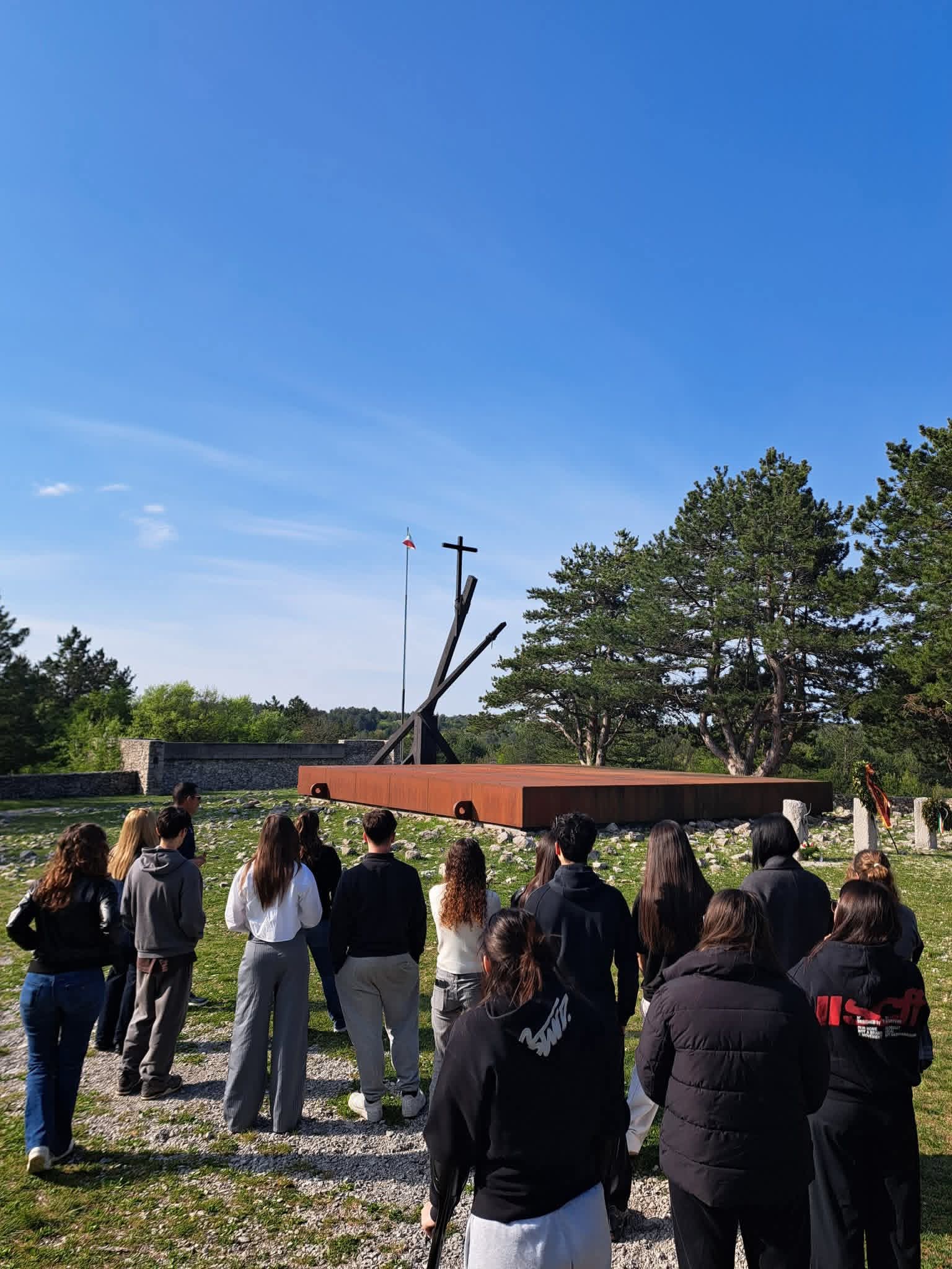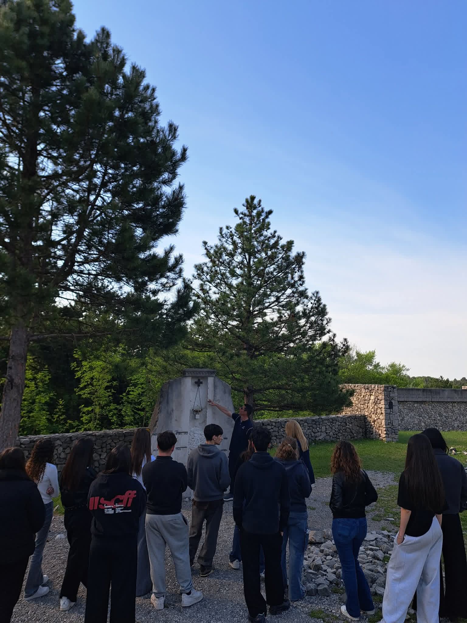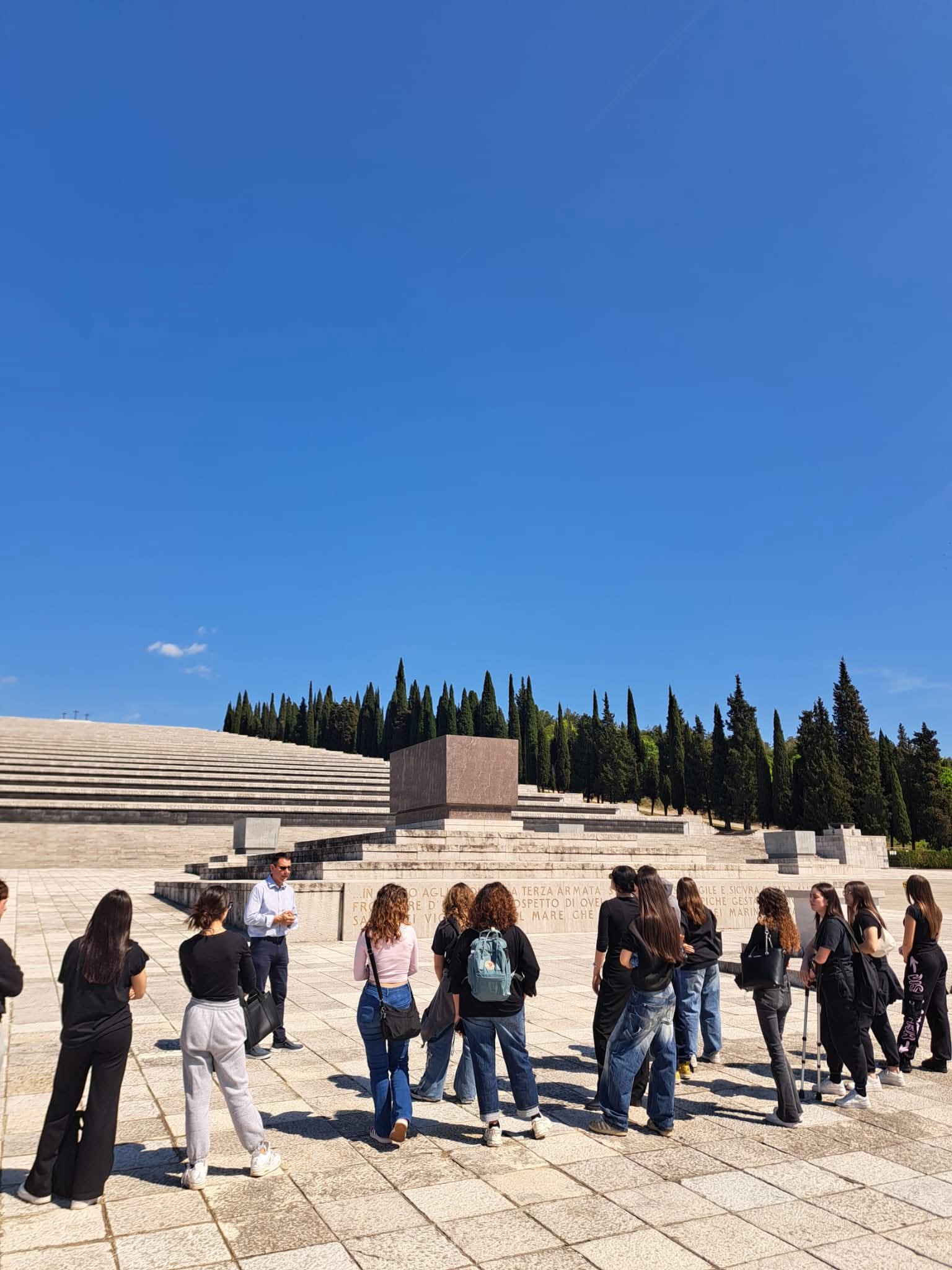 Accompagnati dalla professoressa Catia Gasperi del Liceo Artistico Edgardo Mannucci, dall’Assessore del Comune di Ancona Antonella Andreoli e dal Coordinatore regionale per le Marche dell’Unione degli Istriani Emanuele Piloni, i ragazzi sono stati accolti nel primo pomeriggio di venerdì 17 aprile a Redipuglia (Gorizia) dal Presidente dell’Unione degli Istriani Massimiliano Lacota, per visitare il Sacrario dove riposano i resti di oltre 100.000 soldati italiani morti nella Grande Guerra per Trieste e l’Istria italiane, ed al complesso dei trinceramenti del Monte Sei Busi.