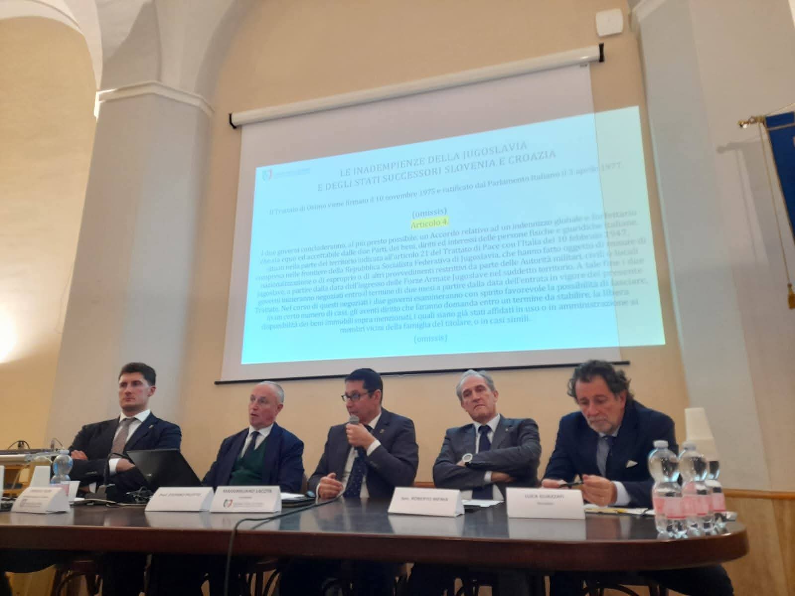 I relatori hanno ben spiegato le vicende storiche e politiche che hanno portato alla firma del Trattato di Osimo il 10 novembre 1975, spiegando bene come sia il Trattato medesimo, così come il successivo Accordo di Roma del 1983 non siano stati rispettati dalla Jugoslavia prima, che ha versato solamente 17 dei 110 milioni di dollari di risarcimento previsti, e da Slovenia e Croazia poi che non hanno pagato nemmeno un centesimo rispetto a quanto dovuto, essendosi dichiarate eredi della defunta Repubblica federativa di Tito.